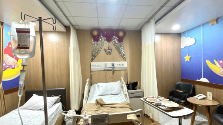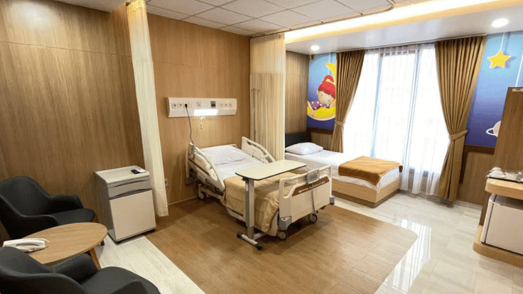 Rawat InapKawasan tirah baring bernuansa elegan yang dirancang kedap suara, memastikan jam istirahat pasien pascaoperasi tidak terganggu.
