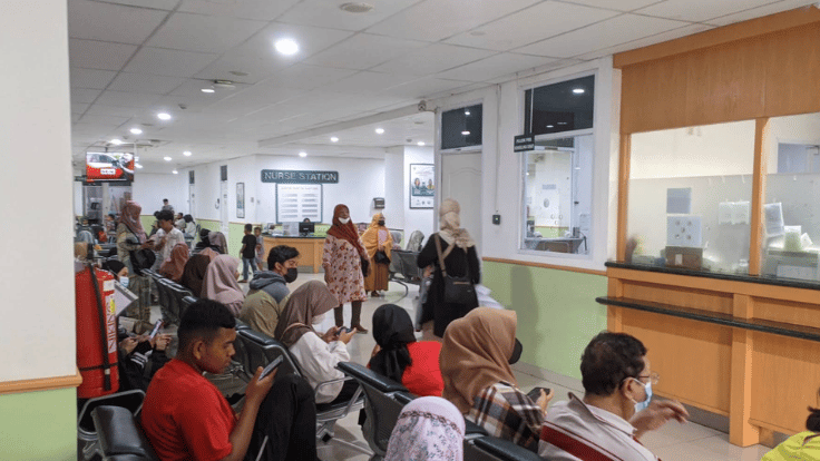 - Sambil duduk rileks di area tunggu, nama pasien akan digemakan oleh perawat guna pemantauan parameter suhu serta angka tensi darah.